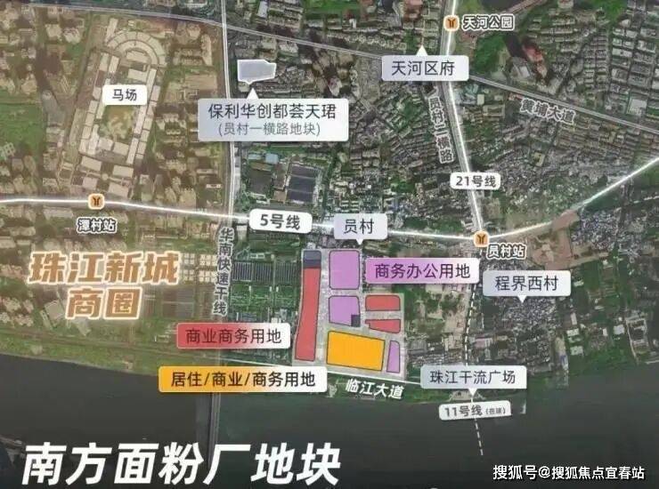尤为值得一提的是,这是天河比较难得的靠近地铁站的盘,地块东北侧距离地铁5号线与11号线交汇的员村站仅150m,5号线+11号线可以连通广州最核心的几个商务圈---珠城、琶洲、天河北、白鹅潭等等,通达性很强。