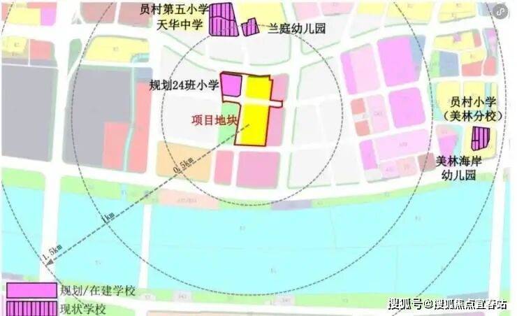 地块1.5公里范围内有员村第五小学、天华中学、兰庭幼儿园、员村小学(美林分校)、美林海岸幼儿园等。