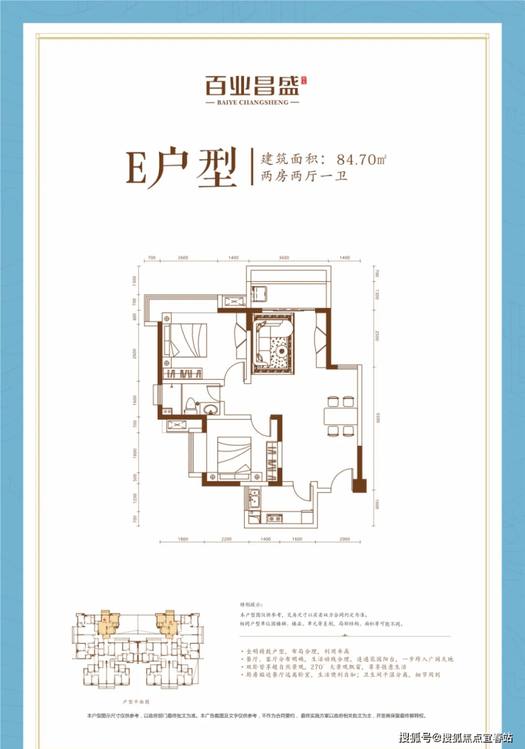 【户型设计】:户型方正,明厨明卫,全通式飘窗设计,通风采光良好,动静分区合理,舒适度高。