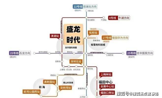 盛龙时代家门口就是4号地铁线“清湖站”,5站到深圳北站,6站到南山,8站到福田,另外还有27号地铁线“松和站”距离约1.3公里,正在建设中。