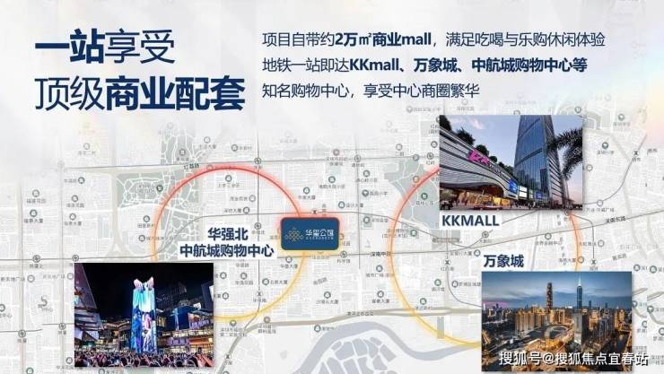 商圈方面:自持约2万㎡社区精品商业综合体,100米沃尔玛,200米深南茂业,地铁一站式享受万象城、KKMALL、华强北九方购物中心完美配套