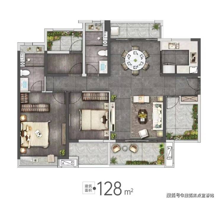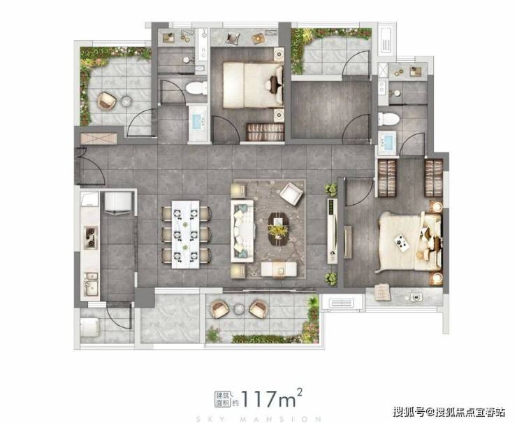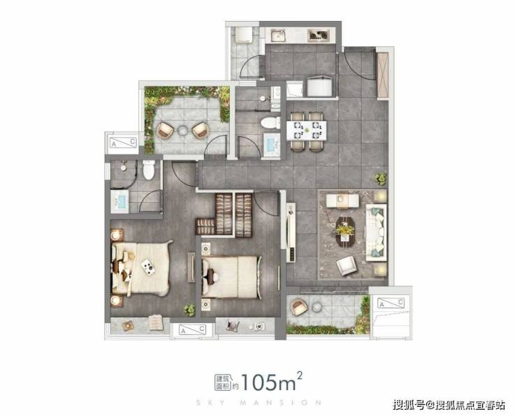 建筑面积约105㎡的爆款2+1房,保持了项目一贯的水准,并没有在空间上进行妥协。
