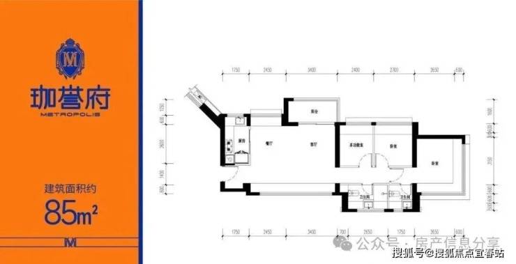 | 约85㎡(竖厅)三房两厅两卫【总价约396-440万】