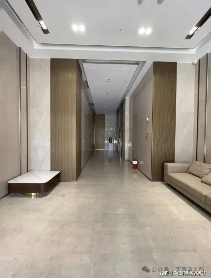 转身室内,双入户归家大堂,其中首层入户大堂挑高约6米,采用“无主灯”设计,约2.3米高的入户门,直接将品质感拉满。