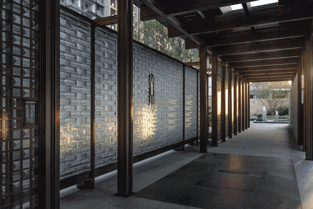 更令人惊叹的是对传统工艺的现代转译——古代皇家建筑中象征尊贵的“沥粉贴金”技艺,在此以金属漆结合先进工艺重新演绎,于细节处闪耀东方智慧。极简的建筑线条、大面积通透玻璃幕墙,辅以“山水画框”式的设计巧思,完美实现了传统山水画卷构图向现代人居空间的诗意转化。