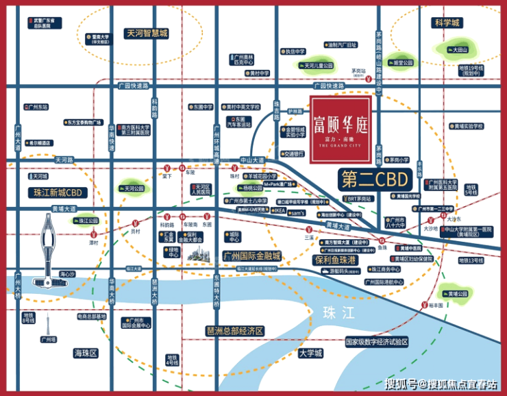富颐都荟地处鱼珠隧道(预计2026年底通车)北端起点,未来直达琶洲东片区,当前通过茅岗路、黄埔大道等主干道,半个钟内可通达珠江新城、金融城。
