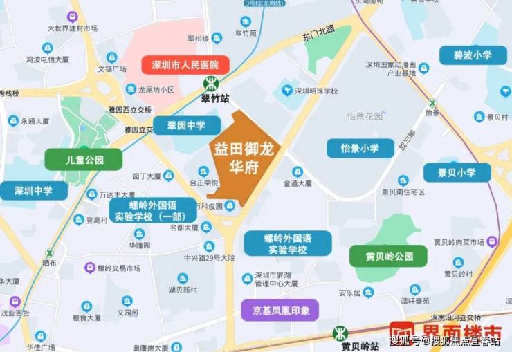 从交通来看,益田御龙天地位于地铁3号线翠竹站地铁口,是纯正的地铁物业。未来还有规划中的24号线在此交汇,1公里范围内还有2号线黄贝岭站、5号线怡景站,出行非常方便。