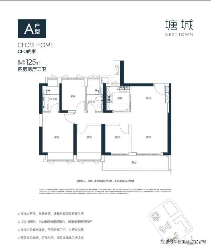 两个户型空间相似,125㎡是117㎡户型的plus版,南向全明4房,各功能间尺度较为舒阔,带宽景阳台,户型可塑性强。