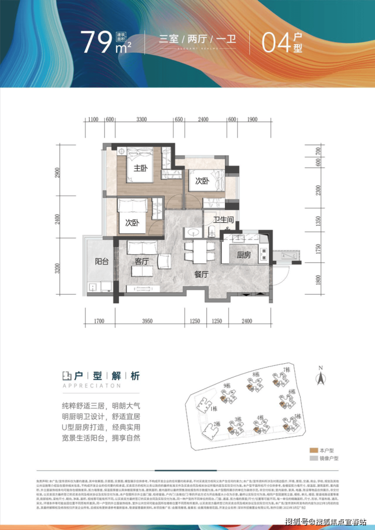 • 建面约79㎡ 3房2厅1卫:南北通透3房,功能分区合理,全凸窗设计,三分离卫生间
