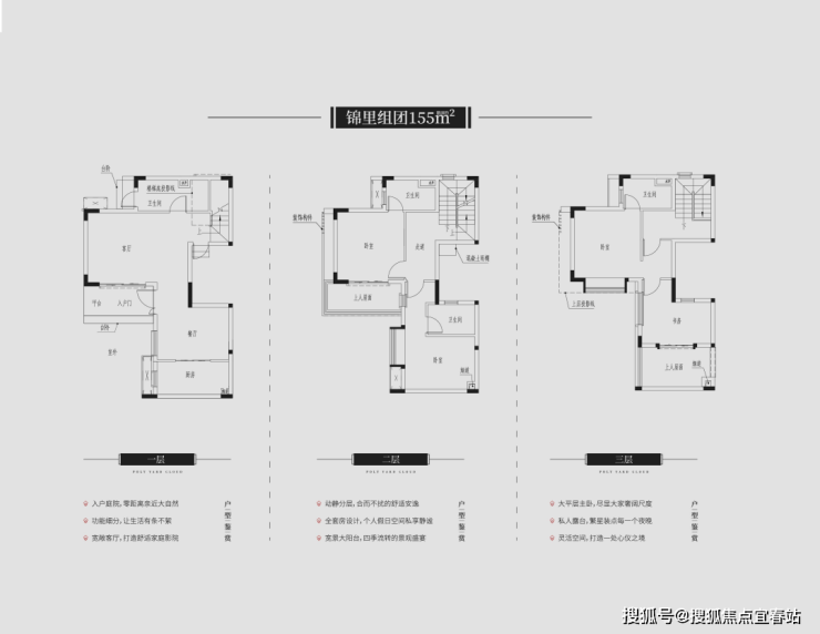 【户型图 项目样板房】:155㎡户型设计;户型亮点:①155平精装小别墅,最优性价比②私家庭院,私密性强,可随心布置③采光客厅,宽敞舒适④全套房设计,享受自我空间⑤宽景大露台,赏四季繁花
