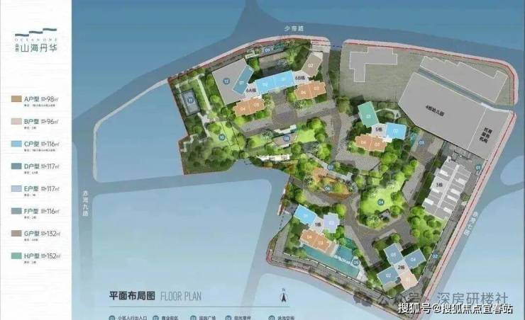 二期即准备入市的山海丹华府,共有983套住宅。由5栋住宅+1栋幼儿园组成,住宅高度29-32F,整体的容积率3.37,绿化率40%,停车位990个。