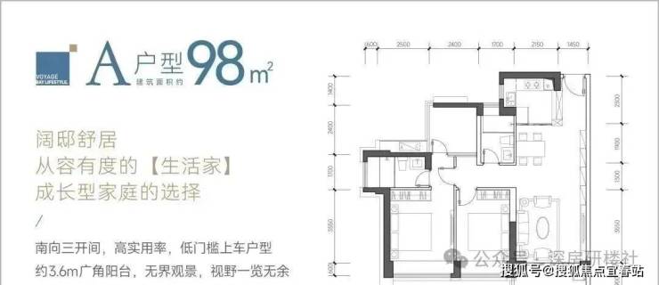 98㎡的3房2厅2卫,设计的是经典竖厅格局,LDKB一体化设计,客厅3.6米开间,三开间朝南,动静分区,3个卧室分别做到了主卧13.69㎡/次卧11.62㎡/次卧5.76㎡(包含墙体飘窗),都不用搭配飘窗做床,L型厨房,卫生间干湿分离,得房率约:89%(包含赠送),西南、东南或正南朝向。
