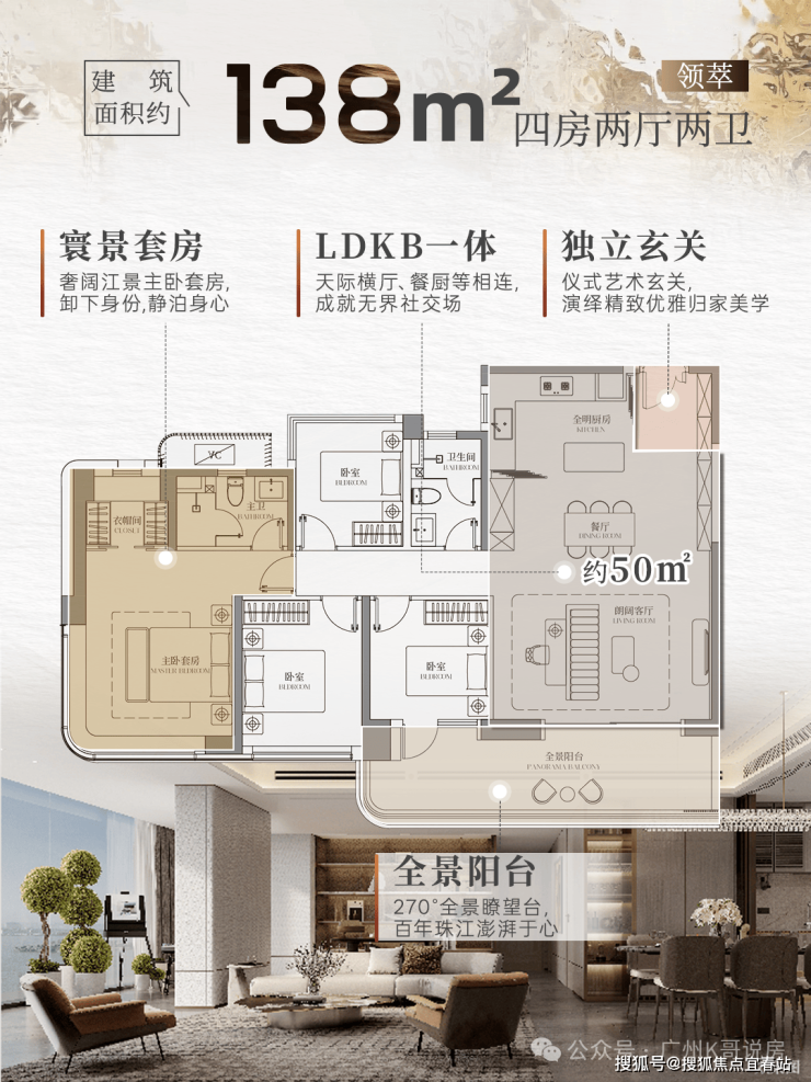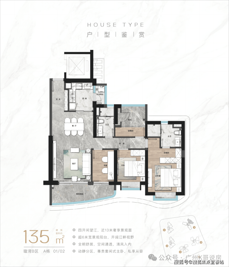 建面约138㎡户型则进一步升级,真正做到90%以上望江,更享有同等面积段的户型中最大的观江面宽。