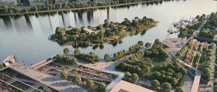 绵延5公里黄金江岸线上,商业中心、集团总部、艺术中心等,多元地标,群星闪耀,一如上海西岸般,向世界昭示着这片活力水岸的复兴。