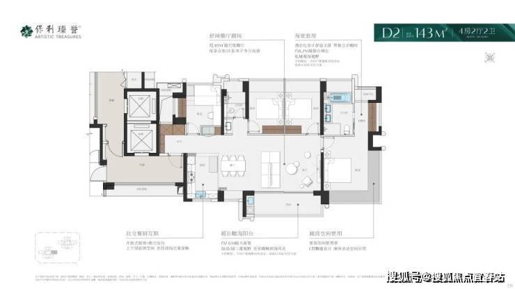 143㎡4+1房:创新"可生长空间",非承重墙设计允许根据家庭结构变化重组空间,最高得房率达108.38%