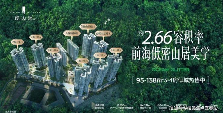 在前海普遍高密的住宅规划中,观山海家园规划容积率却仅有约2.66,楼间距最宽达到约46m,乃至在整个深圳楼市中都屈指可数。