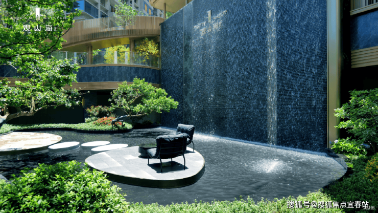 就在今天,项目打造的近9米水庭院瀑布实景绽放。论形制、论规模,这处园林造景在前海乃至整个深圳都很罕见!