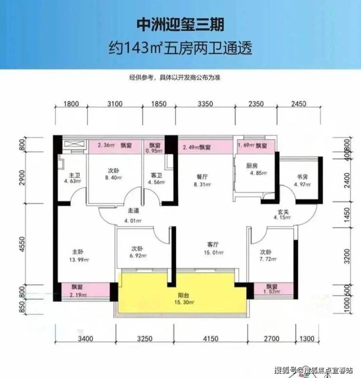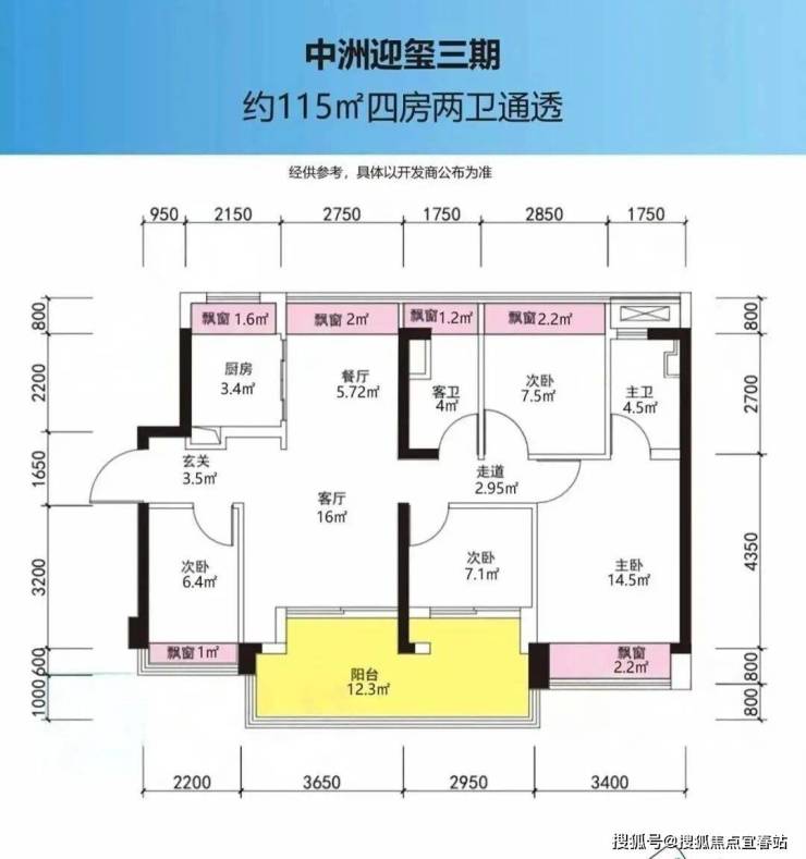 115㎡四房两卫,南北通透,大阳台,主卧大飘窗。
