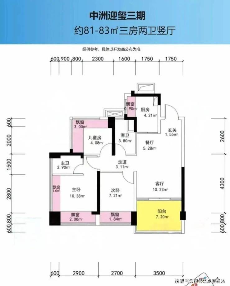 81-83㎡三房两卫,紧凑实用,双卫设计满足家庭需求,主卧带飘窗;缺点是次卧面积较小,适合预算有限的年轻家庭
