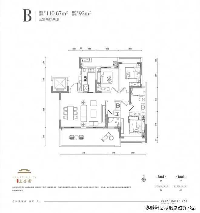 2、美学建筑经典品质立面美学立面:新中式建筑美学外立面,契合城市精英的审美趋势板式建筑:纯板式建筑,南北通透,缔造全明舒适的居住体验清水湾上合府