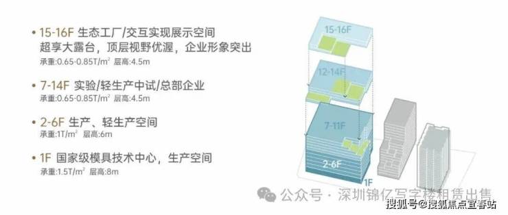 ③、超高层高荷载超高生产层高,约1.5T/㎡最高荷载,为大型生产企业量身定制;