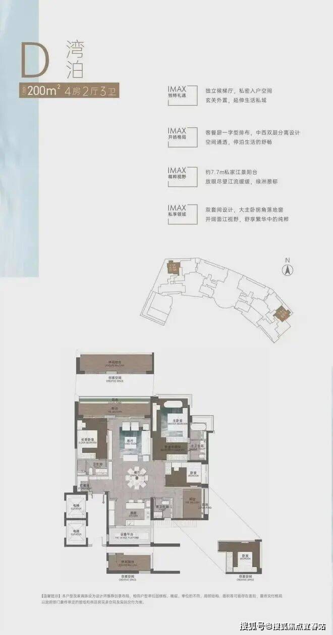 低区以朝向为主导,布置140m²轻奢产品;高区以景观为主导,布置190~250m²豪宅产品;拥有一线江景资源的顶层北侧则打造350~420m²奢华大平层户型。