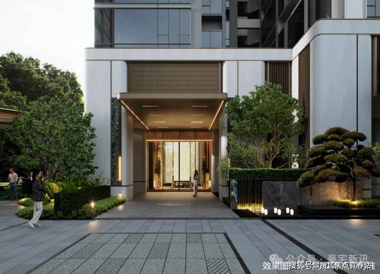 立面采用高端蜂窝铝板+天然石材+类玻璃幕墙,精致的金属勾边,毫米级幕墙工艺锻造,以“公建化立面”诠释高阶人居美学。