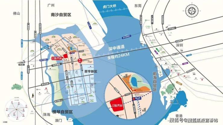 深中通道全长约24公里,是集“桥、岛、隧、水下枢纽互通”于一体的世界级跨海交通集群工程。一桥飞架,改写珠江口两岸融合发展格局,深中通道将深圳至中山约80分钟的车程缩短为约30分钟(信息来源:翠亨新区官网),加速深中同城,实现工作在浅海,居住在西岸,生活自由切换,实现两岸同频发展,共荣繁华。