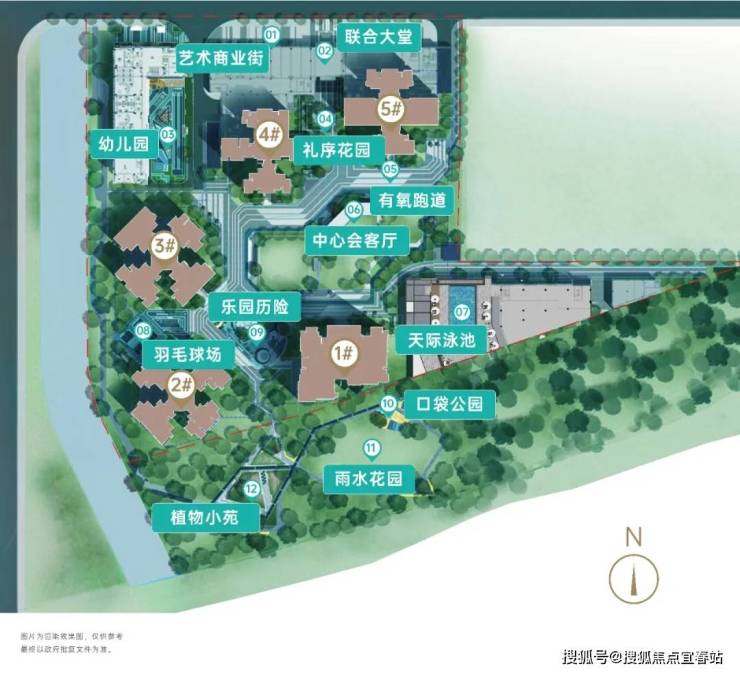 项目总规划共有5栋住宅,配建幼儿园。