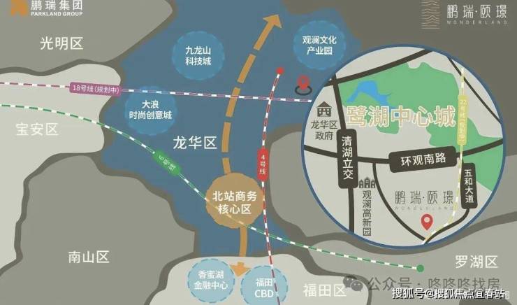 深圳鹏瑞鹭璟府坐落于龙华区观湖街道五和大道与澜清一路交汇处,地处鹭湖新城核心板块,紧邻国家级观澜高新园区,是龙华区“双核中心”(与深圳北站商务区并驾)的重要组成部分,更是“数字龙华,都市核心”战略的关键承载地。这片被定位为“科技行政文化核”的区域,依托观澜高新园的产业基础,已集聚华润三九、三一科技、汇川技术等60余家亿元级企业,重点发展生物医药、智能制造、数字经济等战略性新兴产业,目标2028年实现千亿产值,区域发展潜力十足。项目周边既衔接产业区的发展红利,又坐拥“一山一湖四公园”的生态基底,南望樟坑径郊野公园,北邻鹭湖滨水公园,城市界面随着片区开发持续优化,兼具居住舒适度与长远价值。