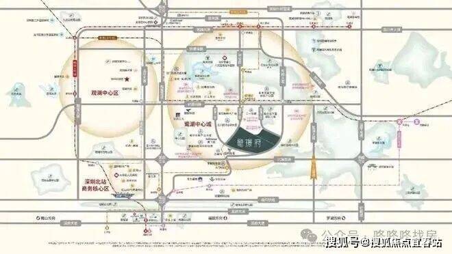项目构建了“地铁+有轨电车+路网+城际”的多维立体交通网络,出行便捷度拉满。轨道交通方面,距离在建的地铁22号线观湖站仅500-600米,该线路预计2027年通车后,6站可直达深圳北站,8站速抵香蜜湖;同时毗邻规划中的地铁18号线,未来将串联宝安、光明、龙华三大片区,30分钟可贯通福田CBD。地面公共交通同样便捷,北侧约700米处设有龙华有轨电车2号线高新区东站,可无缝接驳地铁4号线清湖站,项目自身还配建有公交首末站,周边1公里内分布23个公交站,短途出行高效省心。路网方面,紧邻五和大道、环观南路等城市主干道,通过“三横六纵”路网可快速衔接梅观高速、机荷高速,40分钟内畅达福田、南山等核心城区;规划中的深广中轴城际线还将强化与广州、东莞的城际互联,未来“北站+鹭湖”双枢纽格局成型后,跨城通勤更便捷。