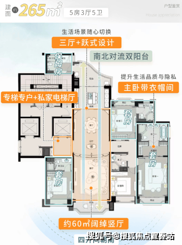 在售户型:130㎡ - 265㎡(包括三房两厅两卫至五房三厅五卫)