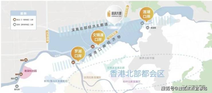 罗湖口岸、莲塘口岸、文锦渡口岸,三大口岸簇拥,链接深港