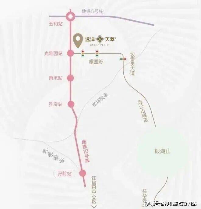 远洋天萃世纪雅园,位于龙岗区坂田街道五和社区,紧邻地铁10号线光雅园站B出口,地处华为全球总部基地所在的坂雪岗科技城核心区域。坂田街道是深圳GDP排名第二的街道,2022年GDP高达2252亿元,占龙岗全区的66%,经济实力雄厚。该片区重点发展现代通信技术、新型显示、云计算、下一代互联网等高新技术产业,是深圳都市核心区和广深港澳科技创新走廊的重要组成部分。项目处于深圳几何中心位置,罗湖、龙岗、龙华三区交界处,区位优越,既享受产业发展的红利,又具备便捷的通勤条件。