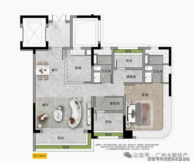 “宽幕视野” 南北通透双视野,主卧270°转角飘窗