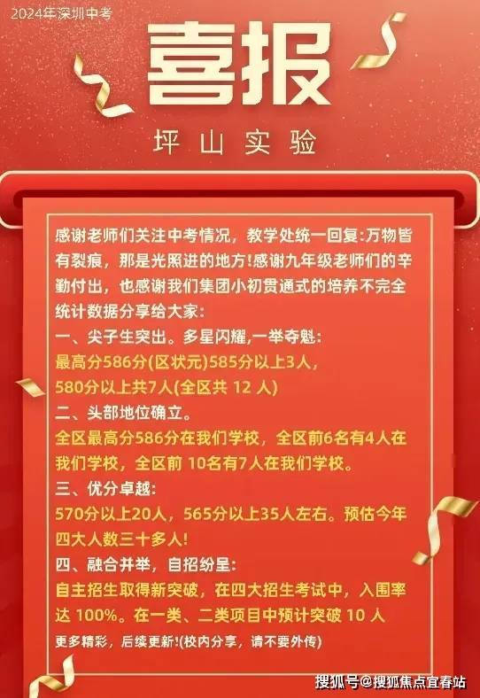 据悉586分的坪山状元就来自该学校,且580分以上更是达到了7人,而全区总共不过12人,相当于近6成的高分学子出自坪山实验,历来备受家长们的认可。
