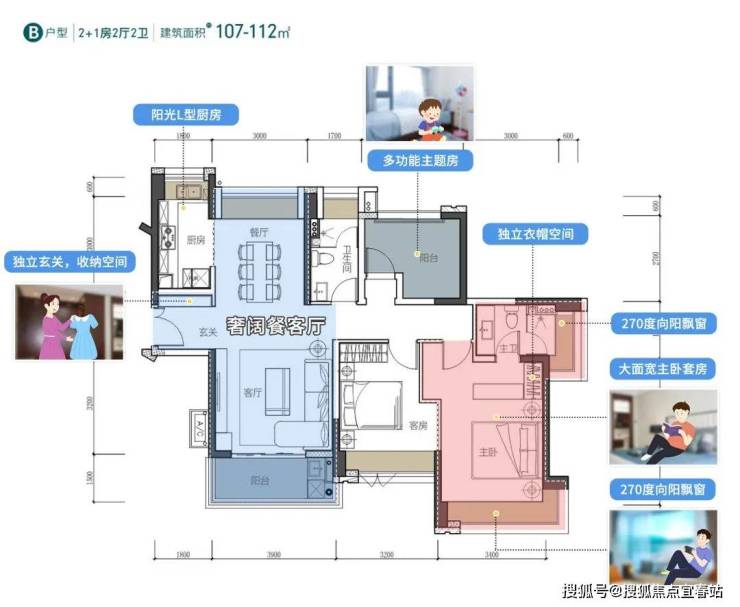 建面约107-112㎡的终极改善户型,约10.5米的三大开间朝南,全屋采光面更拉到最大尺度,通透而明亮的室内环境,让起居生活更加健康。