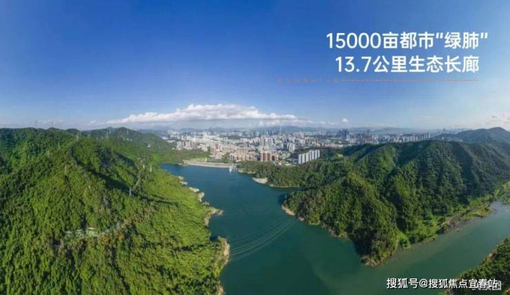 南向,是郁郁葱葱的塘朗山,近1000万平的原生山脉,森林覆盖率达约87%,山高谷深、林茂水长。60%绿化控规,全市第一的天然氧吧,负氧离子含量2万/cm³,是福田中心区的4倍