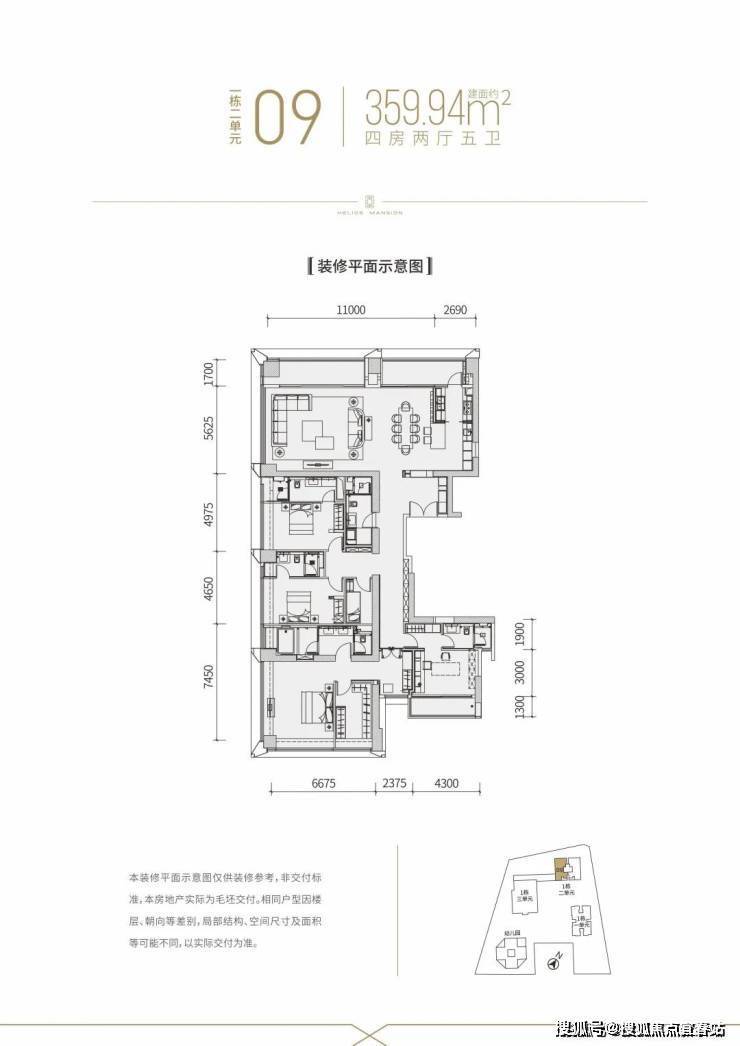 【建面约360平4房全套房2厅5卫】