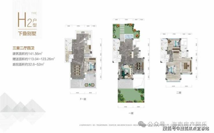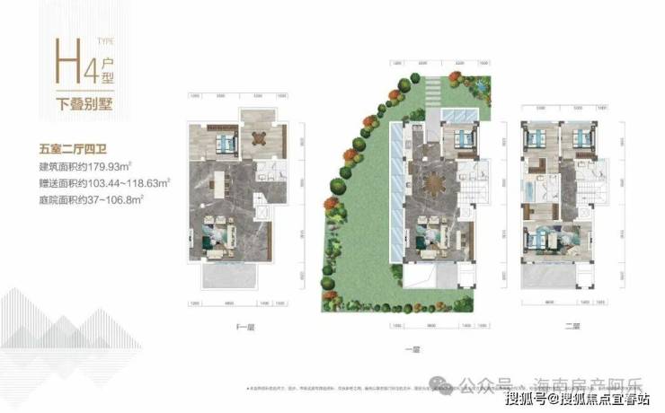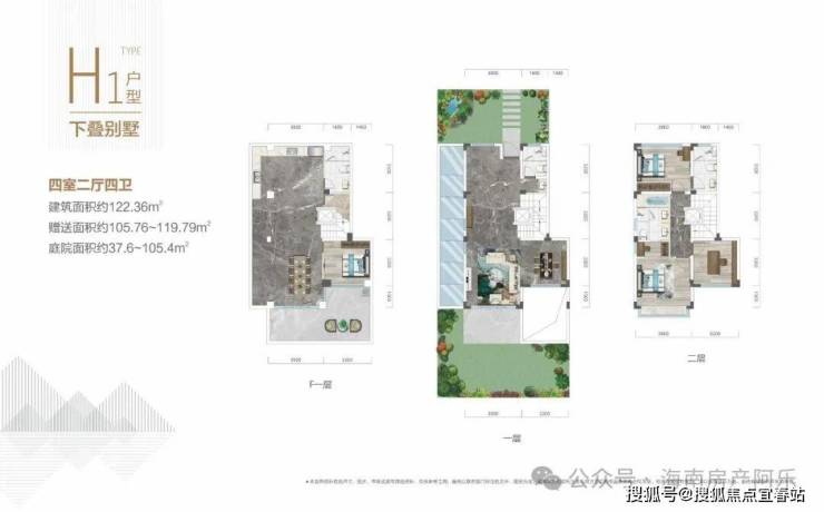 122-188平上下叠,使用面积300平左右,院子50-100平