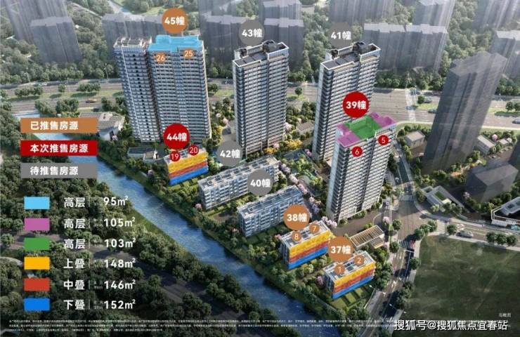 建筑面积约105㎡三房,进阶改善绝版“三阳台”户型,主力总价段约700万级,部分房源总价约650万级。