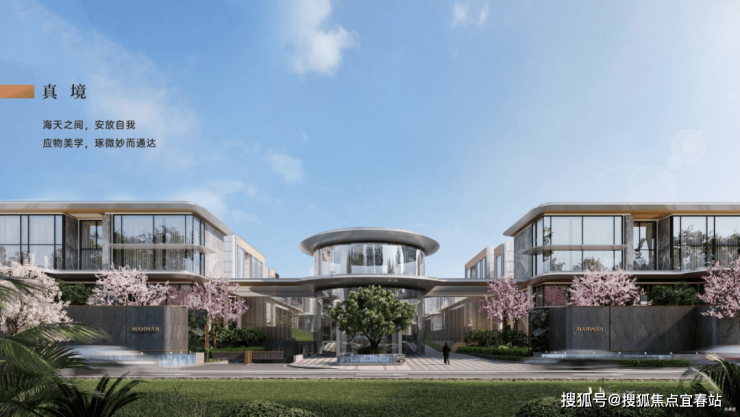 建筑美学携手ZSD卓时设计,大师匠造,师法自然,山海至境特邀卓时建筑,将在地文化创新融合,以独具一格的艺术美学,呈递建筑审美的新答案。建筑立面采用彩釉玻璃及中空low-e玻璃,结合闪银色铝板、香槟金属型材等,呈现出流畅的飘顶造型,回应海洋意志与奢而不繁的当代审美。