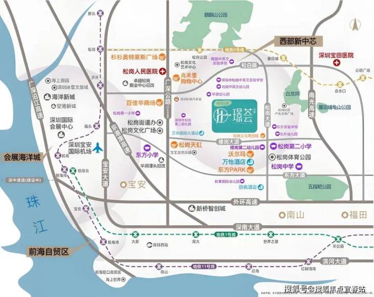 璟荟名庭项目所处的区位属于松岗老中心板块,周边的居住氛围非常浓厚,松岗目前最好的商业,如天虹商场,联投东方park、沃尔玛都是在这个区域,包括松岗最好的教育资源,松岗二小(距离约600米)、松岗中学(距离约1.5公里),其中2024年的中考状元就出自松岗中学。