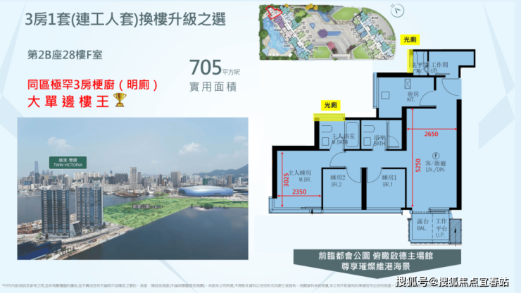 香港維港·雙鑽 TWIN VICTORIA 是啟德跑道區的高端住宅項目,由中國海外發展有限公司開發。 項目前臨維多利亞港內海及24.5公頃都會公園,約70%單位可享270°無遮擋海景。 划屬34校網(小學)及九龍城區校網(中學),教育資源優質。 小區設有約3.2萬平方英尺的園林和豪華會所,配備泳池、健身房等設施。 交通規劃潛力大,中九龍幹線已通車,未來智能綠色集體運輸系統建成后,交通將更便捷。