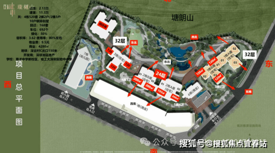 方直珑樾山位于深圳城市发展中轴,塘朗山南麓,紧邻地铁7号线深云站,交通便利。项目占地约2.1万㎡,总建筑面积约11.3万㎡,容积率仅为3.62,绿地率30%,为居民提供了一个低密、宜居的生活环境。项目总户数520户,车位635个,梯户比为2梯2户/2梯3户,由方直物业提供专业管理服务。