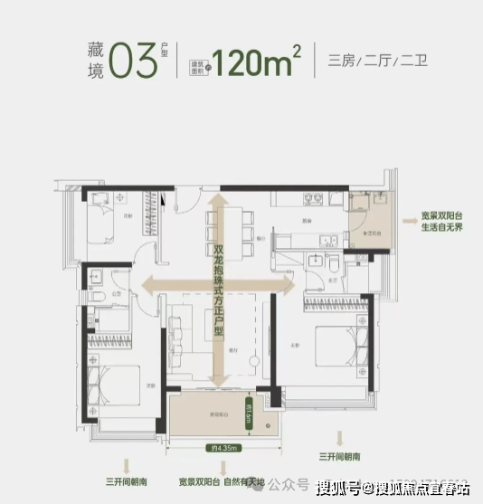 建面约120㎡三房两厅两卫:横厅户型看山景,竖厅户型近北环大道。无论你选择哪种户型,都能享受到开阔的视野和舒适的居住体验。