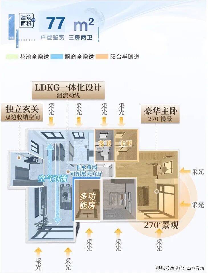 新规产品,将空间发挥极致,建面约77-91㎡三四房,全双卫设计,打造南北通透低密精奢小户,真正做到高赠送高使用