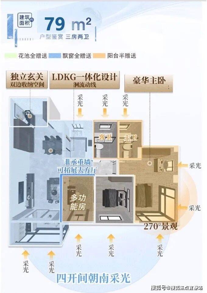 最高约120%使用率,约6.3米南向阳台, 豪华主卧套房+270°环幕全景窗,尺度堪比120平以上的大户型