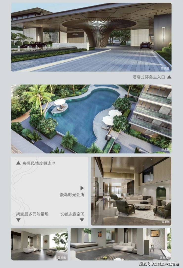 项目汲取中式传统建筑元素,融合现代工艺,打造出精奢立面、坡面屋顶、平直线条的新中式奢宅。园林以东方美学为灵魂,融入岛屿、森林、海浪等自然元素,规划出两轴、三片区、多节点的度假式园林 。有漫游森屿、绿荫织趣、雨林秘境等主题区域,还有酒店式环岛主入口、央景风情度假泳池、漫岛时光会所、架空层多元能量场 ,处处都是风景。