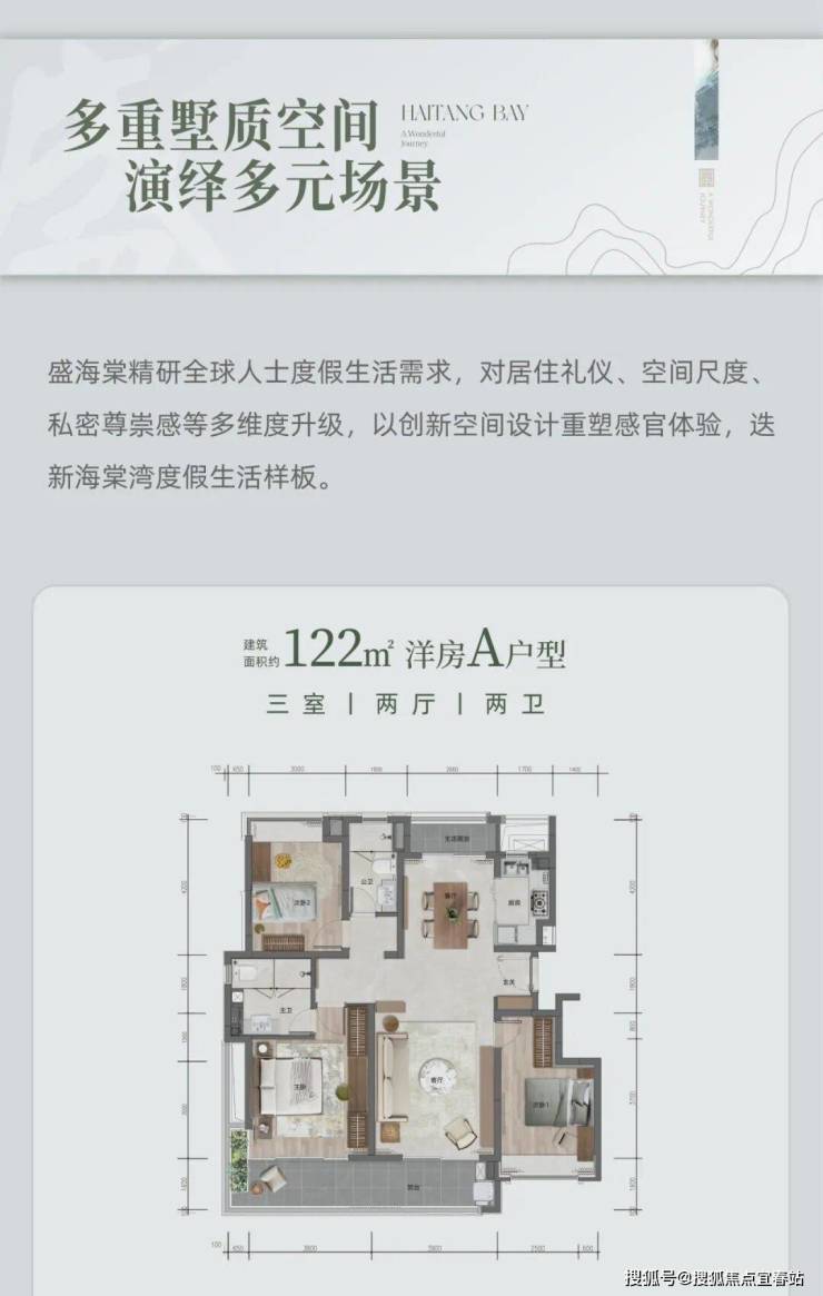 现在热售的户型有建筑面积约 152 - 160㎡的温泉叠墅,还有约 105 - 122㎡的瞰景洋房。物业是大名鼎鼎的绿城物业,住在这里,服务品质稳稳在线。项目地址就在中国・海南・海棠湾 ,这地段,简直绝了!
